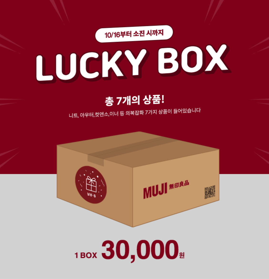 무지 신발을 사고싶어서 입고 되었나 둘러보는 찰나에 럭키박스 안내를 봤다.