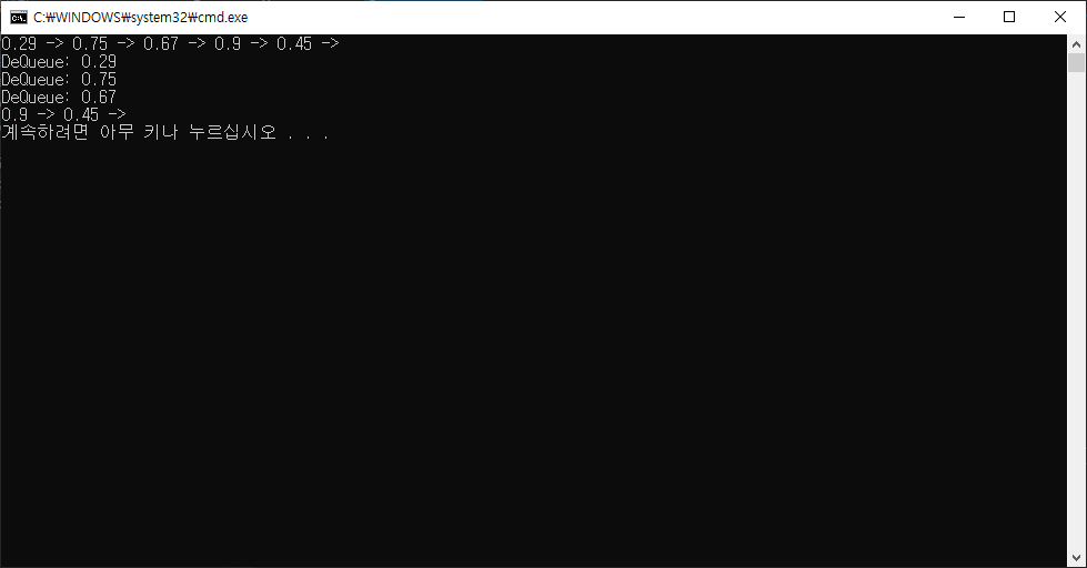 que.EnQueue(new Node<float>(r.Next(100) / 100.0F));