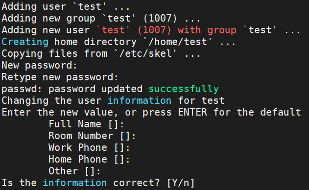 1. adduser를 하면 기본정보를 다 세팅해줌