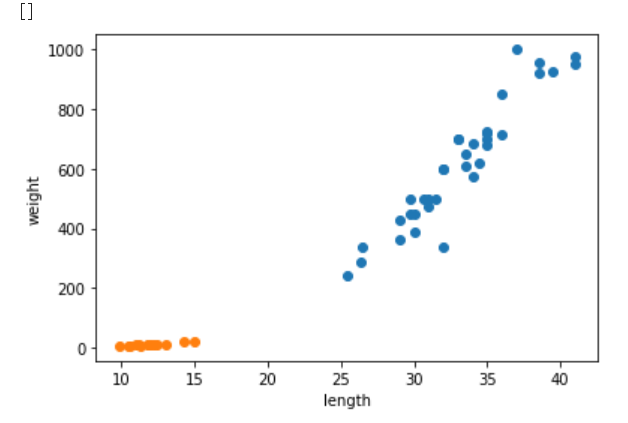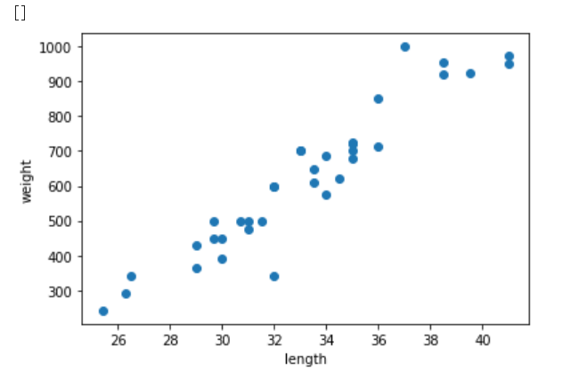 2. 도미 데이터를 그래프로 그려 상관관계를 알아본다.