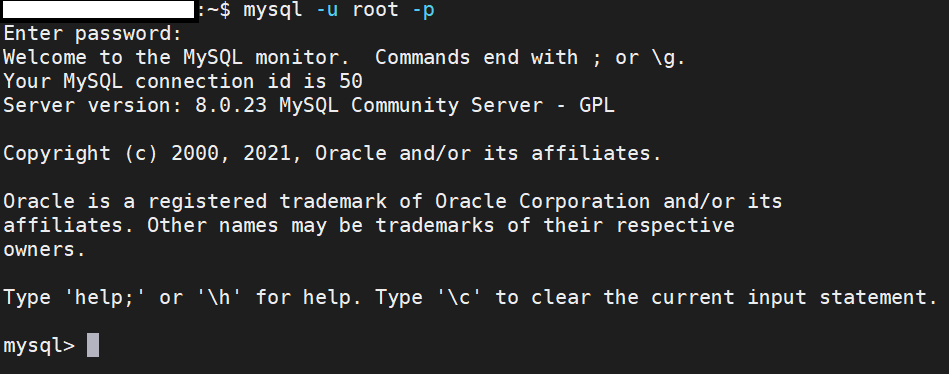 mysql -u root -p