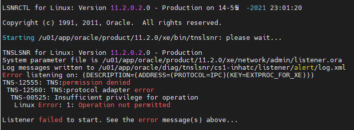 해결법 : 리스너를 실행할 계정에 권한을 넣어준다.
