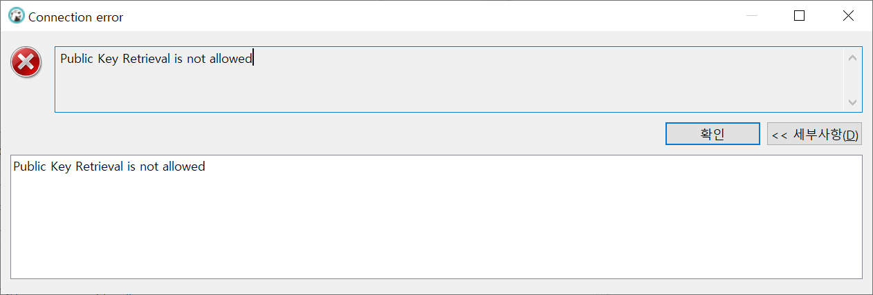 [Mysql] Public Key Retrieval is not allowed 오류해결법DataBase2021. 5. 28. 13:22