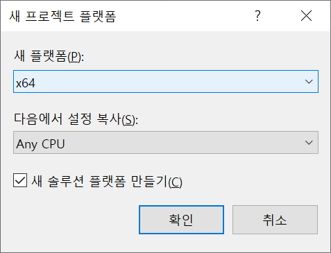 1. 64bit로 개발하는것이 웬만해선 좋기 때문에 특별히 32bit개발이 필요한게 아니라면 64bit로 변경합니다.