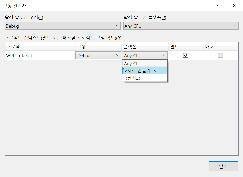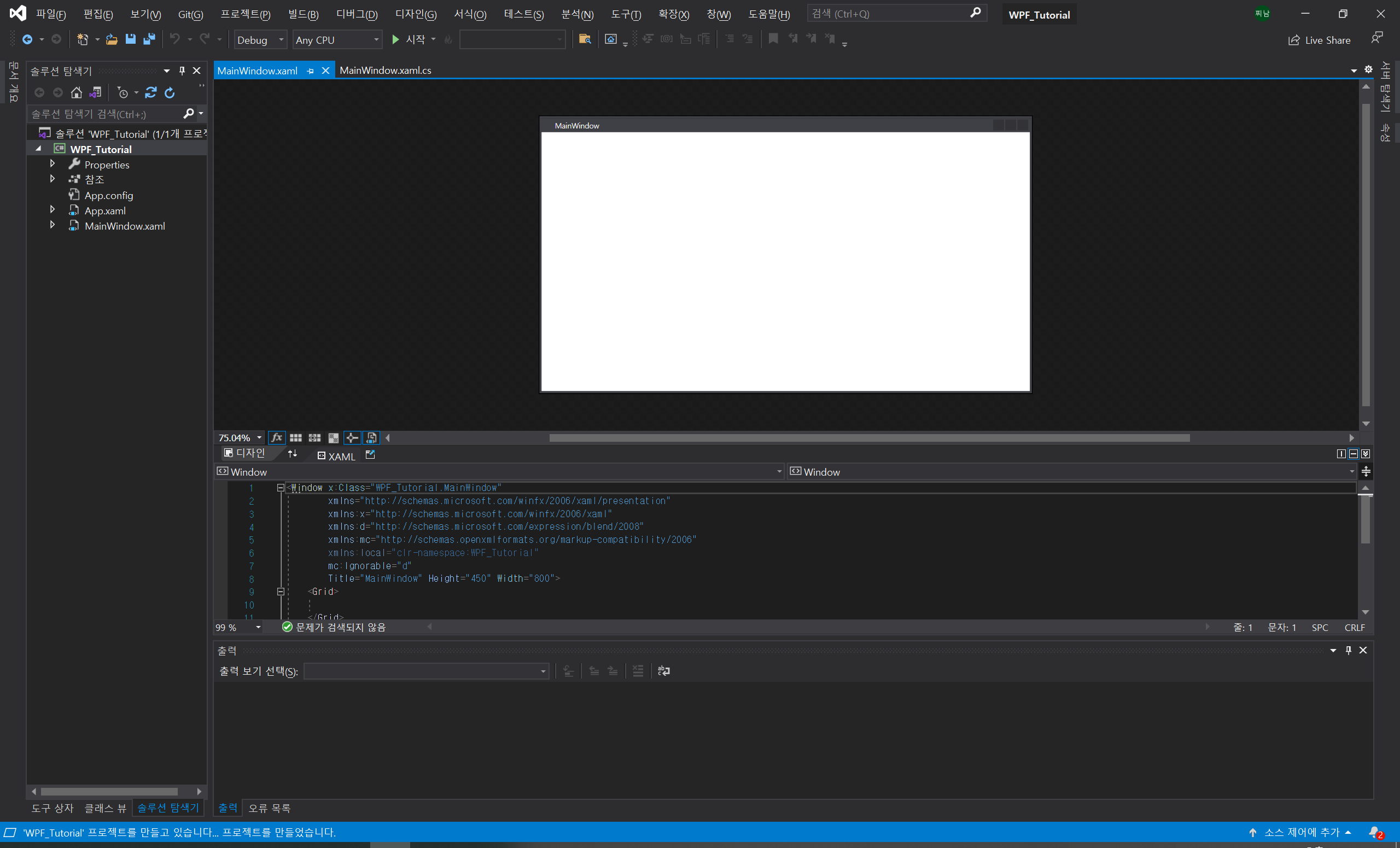 1. WPF 프로젝트를 생성합니다.