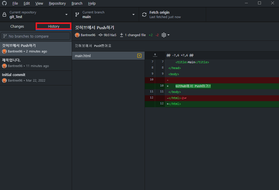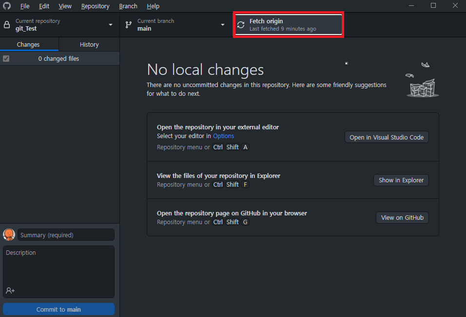 다시 Github Desktop으로 돌아가 Fetch를 합니다.
