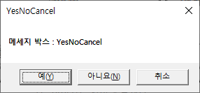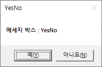 MessageBox사용중 어떤 버튼이 어떻게 생겼고, 사용 방법도 오랜만에 쓰니까 기억이 잘안나서 글을 써봅니다.