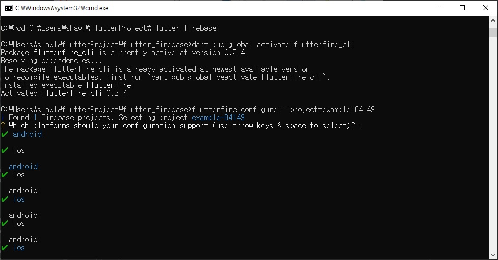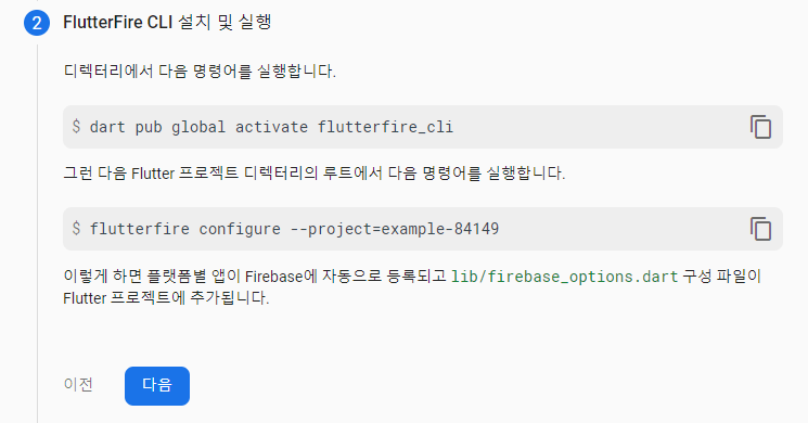 그 다음 firebase 프로젝트를 확인해 올바르게 설치되었고 연결이 되었는지 확인합니다.