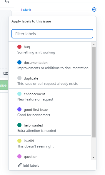 - Labels : 어떤 라벨을 붙일지(새 기능 요청, 버그 등)