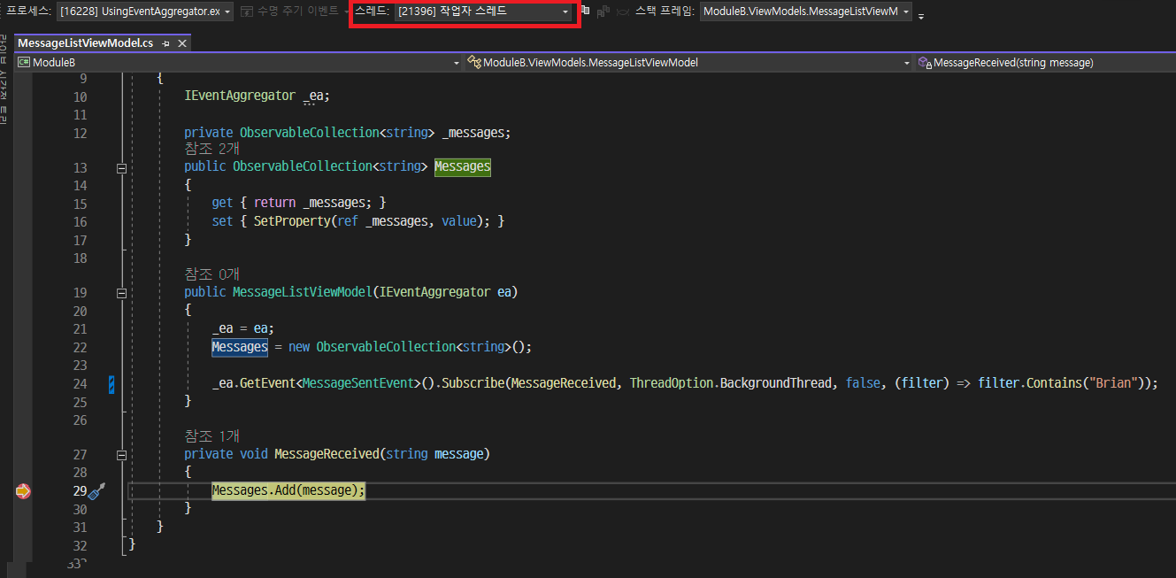 public MessageListViewModel(IEventAggregator ea)