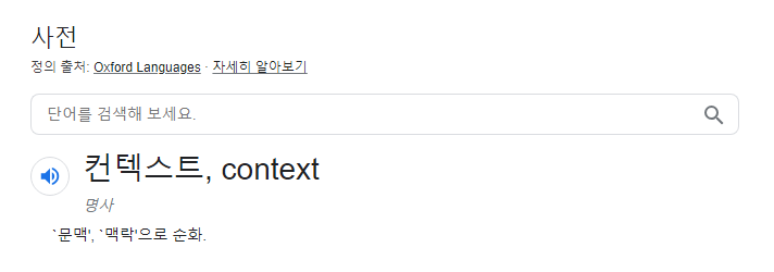 Context는 사전적인 정보로는 문맥, 맥락정도로 순화되지만 컴퓨터분야에서 쉽게 설명하면 현재 사용중인 오브젝트나 로직 정도로 생각해주시면 됩니다.