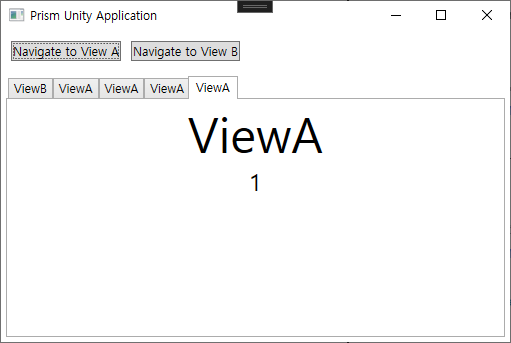 CommandParameter를 통해 ViewA와 ViewB를 Region에 Navigate하는 부분이있습니다.
