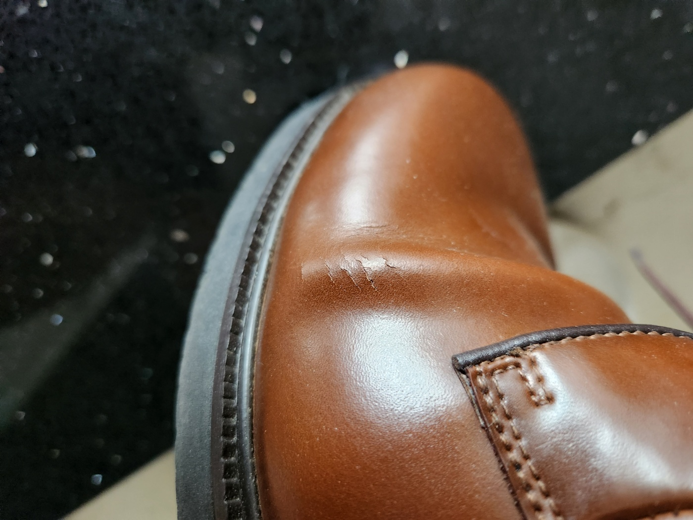 몇번 신지 않았는데 왼쪽 구두가 갈라져 AS를 받으러 갔습니다.