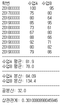 print("상관관계: "+str(cov/(stdA*stdB)))
