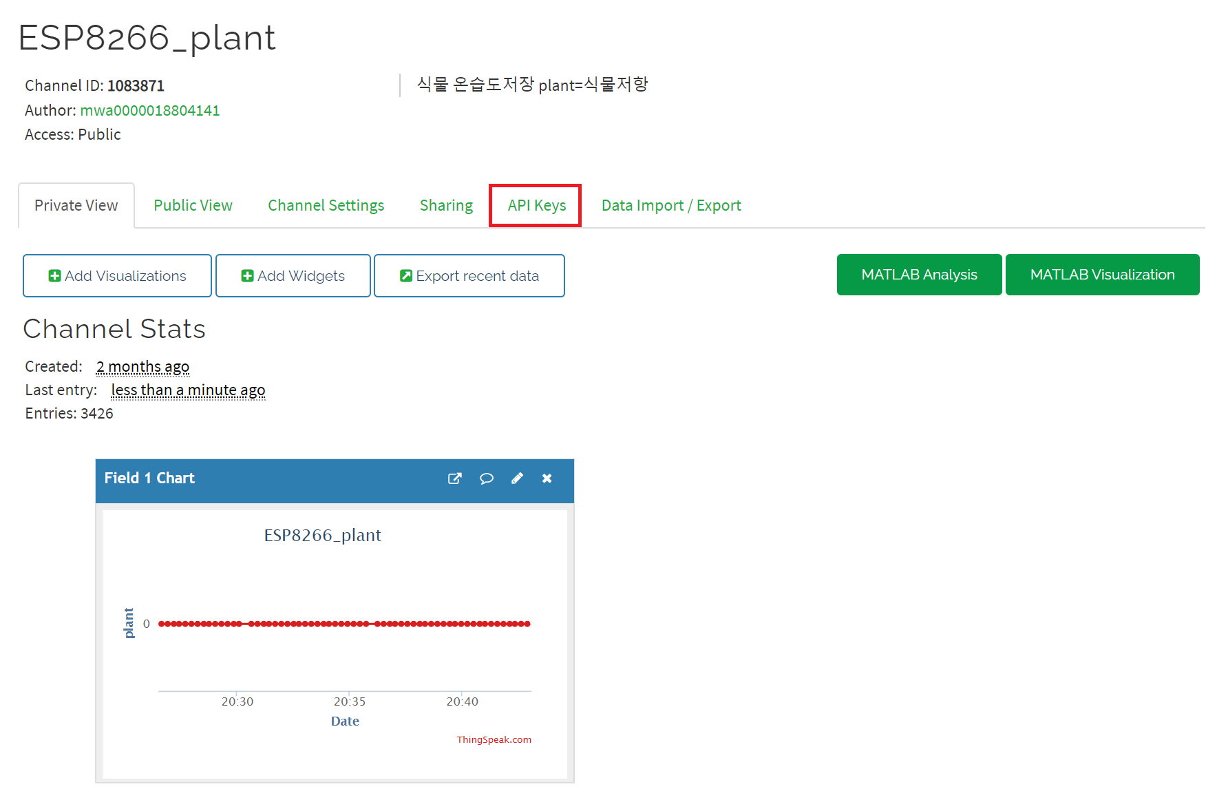 두번째로 @Thinkspeak에 데이터를 올리는 방법을 소개하겠습니다.